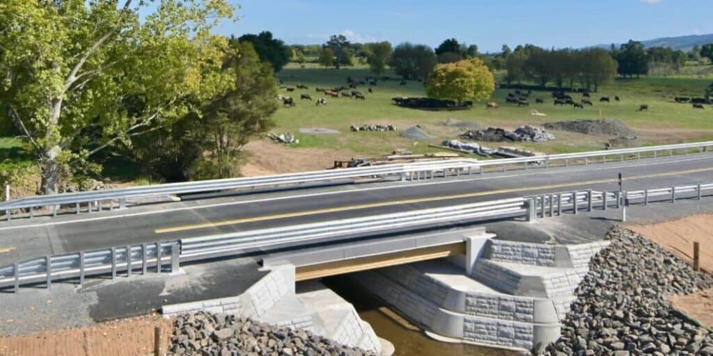 The Onetai Stream Bridge on State Highway 26 (SH26) north of Paeroa has been replaced improving road safety for New Zealand motorists. The original bridge was designed and constructed in 1976. The 2025 replacement bridge is 3m wider and features specially engineered glulam timber beams, plywood decking and MASH compliant CrocGuard barrier. Developed by Safe […]