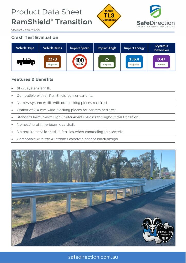 No. MASH Test Level 3 (TL3) crash testing was performed with the RamShield Transition connected to the same anchor block design nominated for the Austroads public domain SBTA-21-005 Transition.