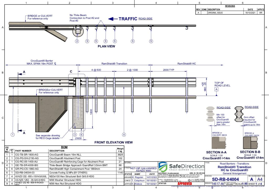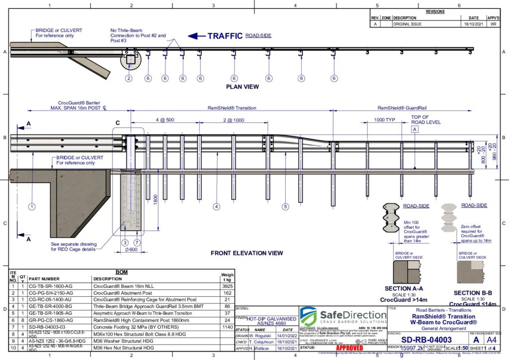 The RamShield Transition is suitable for connecting RamShield guardrail systems to various rigid barriers, including the CrocGuard bridge and culvert barrier.