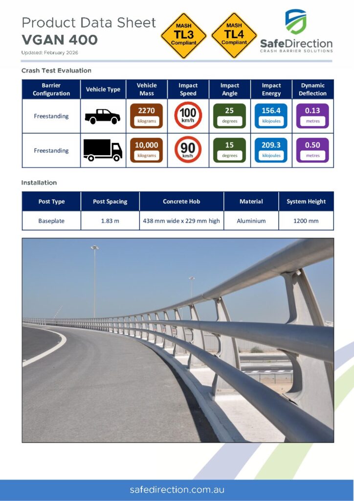 VGAN 400 has been crash tested in accordance with MASH Test Level 4 (TL4).